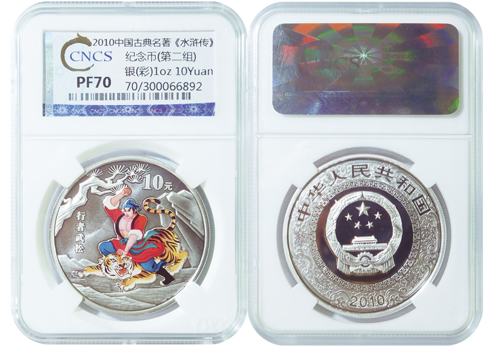 中國(guó)人民銀行定于2010年3月23日發(fā)行中國(guó)古典文學(xué)名著——《水滸傳》彩色金銀紀(jì)念幣(第2組)一套。該套紀(jì)念幣共5枚,其中金幣2枚,銀幣3枚,均為中華人民共和國(guó)法定貨幣。