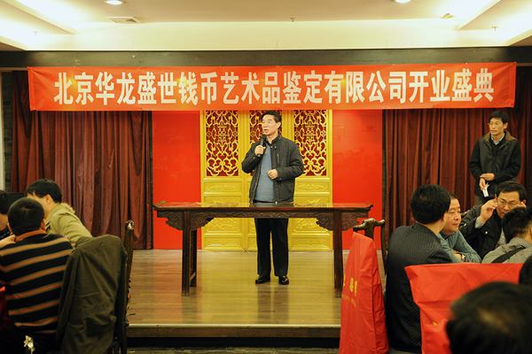 華龍盛世錢幣藝術品有限公司今年10月10日正式注冊,雖然剛成立但也是全國前五強。公司組建期間得到了許多朋友的支持和鼓勵,許多建設性的意見,再次感謝朋友們的慷慨相助。有人問我個人經營不是挺好嗎,為什么要開公司,這個還要從我的一個心愿說起。我是個律師,出過書,有人說我是個文化人,我做錢幣生意,也收藏,有人說我是個幣商,其實我一直覺得我是個泥瓦匠。為什么這么說呢? 20年前我開始接觸錢幣,錢幣評定這個行業(yè)是美國人多年努力制定了一套評級錢幣的標準,為中國錢幣收藏做出了“貢獻”,但是我認為 這并不完全適用中國錢幣,他們對中國錢幣并不完全了解,誰最了解?!你們,在場的各位!你們才是錢幣的專家,所以我決定去做這個泥瓦匠,去支個架子,搭個臺子讓錢幣文化能夠有更正規(guī),更廣泛的交流平臺,讓中國的錢幣中國人自己評定!