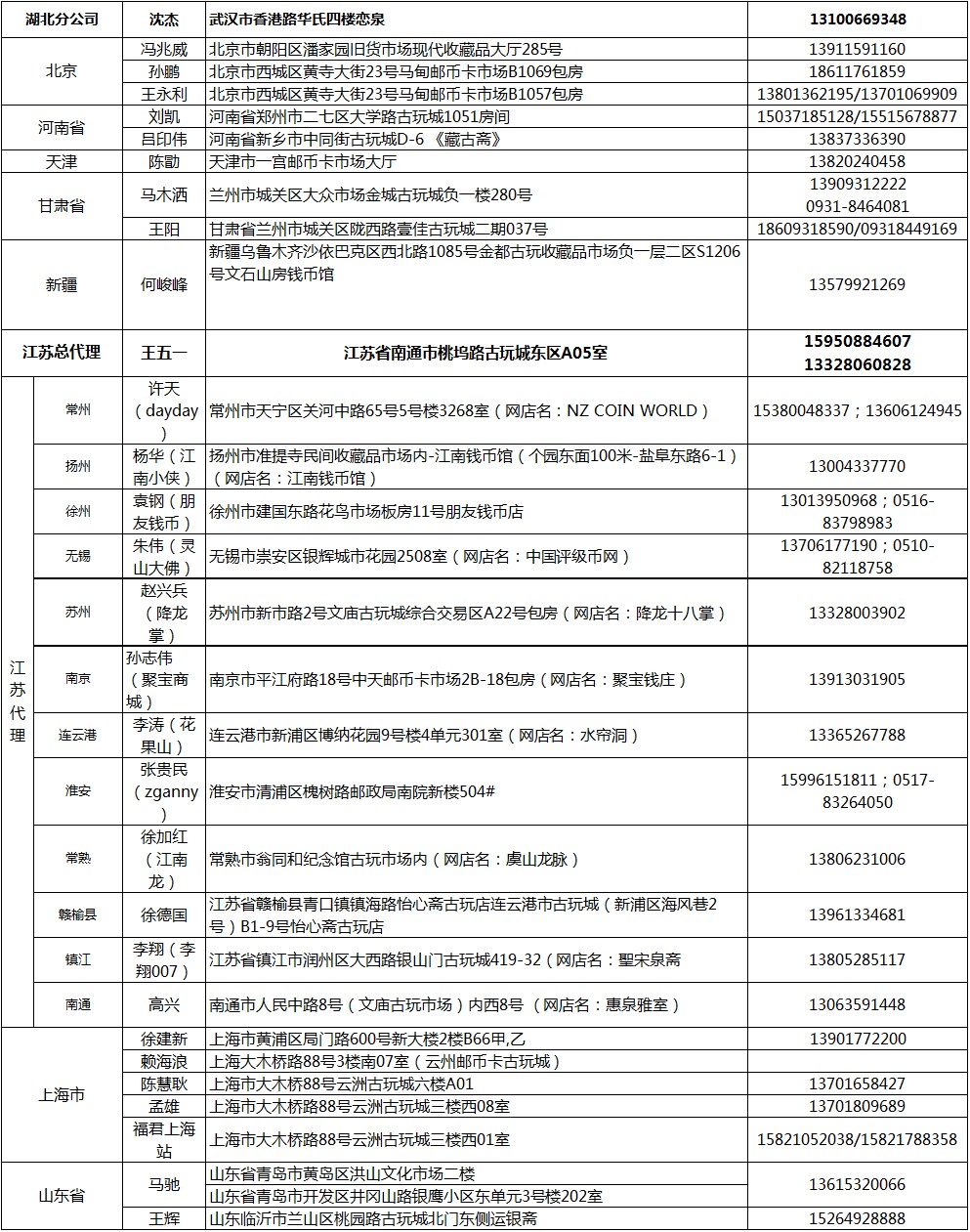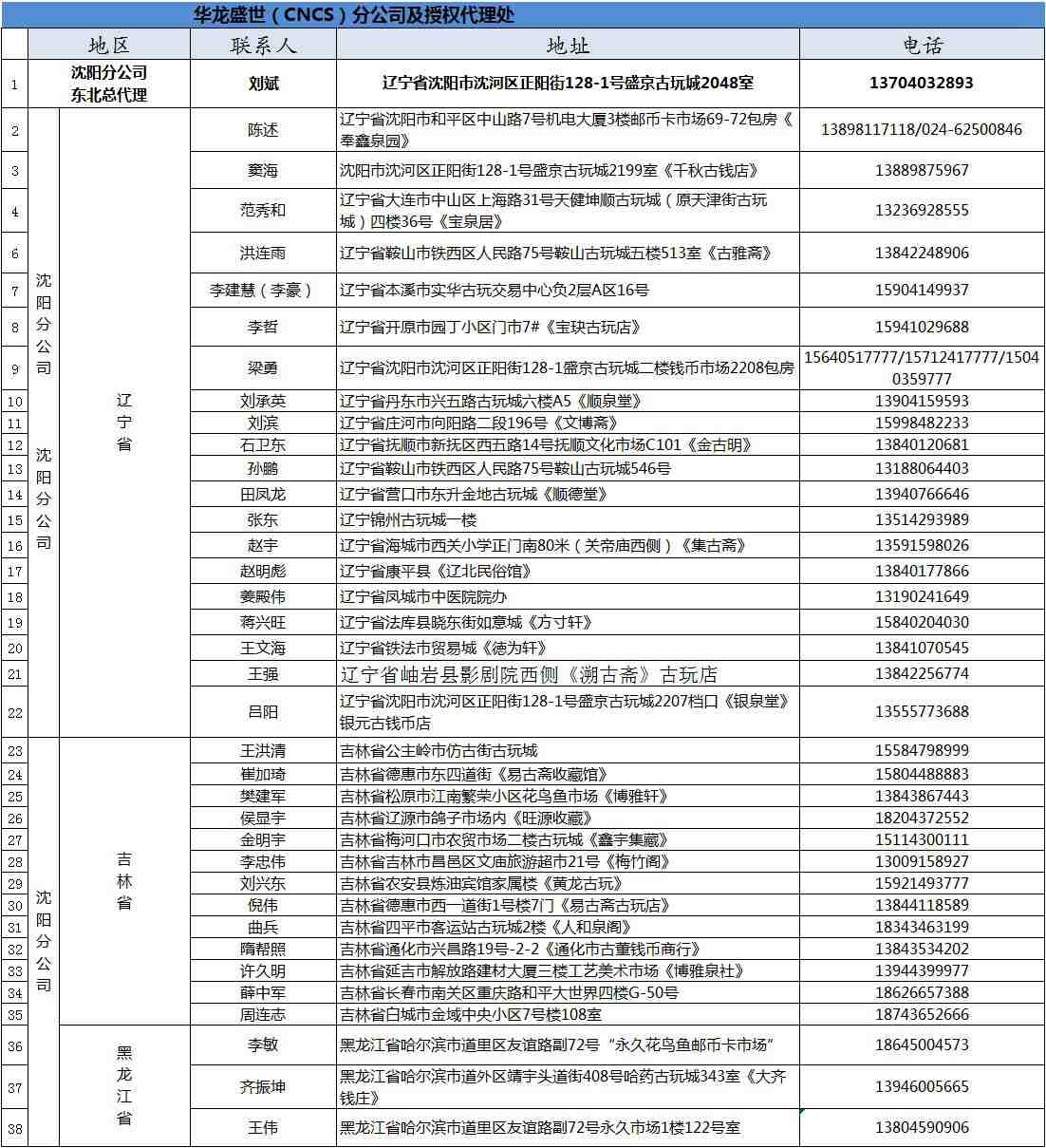 2014年華龍盛世最新代理商分公司及合作單位名錄